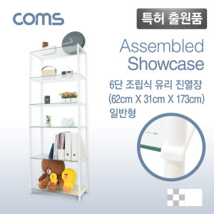 Coms 조립식 유리진열장(화이트) 6단 (620x309 = 6ea), 투명 유리 요약정보 및 구매