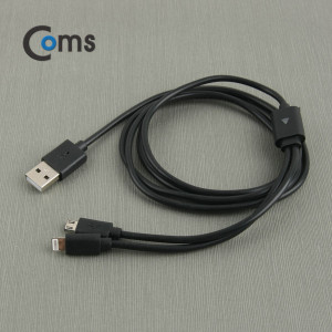 Coms 라이트닝 케이블(2 in 1) Y형/고속충전 Black > 아이폰5 악세서리