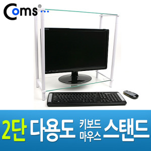 Coms 2단 모니터 받침대(화이트)-키보드 마우스 숨김/다용도, 스탠드 > 모니터 받침대