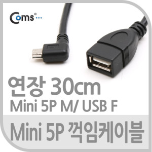 Coms USB 2.0 케이블(Short/Mini 5P M/USB 2.0 F),30cm /꺾임(꺽임) > USB Short 케이블
