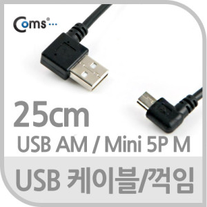 Coms USB 2.0 케이블(Short/Mini 5P M/USB 2.0 AM), 30cm/꺾임 > USB Short 케이블