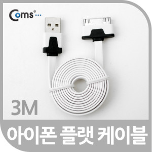 Coms iOS 스마트폰 플랫 케이블 3M 충전/데이터(화이트)/30핀(30Pin)