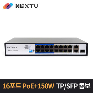 16포트 10/100Mbps POE+150W 스위치허브 / 2TP 1SFP Combo/ 4가지 작동지원모드