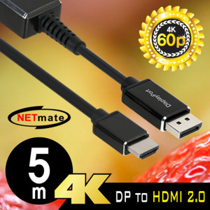NETmate NMC-DPH5 DisplayPort 1.2 to HDMI 2.0 케이블 5m > AV케이블