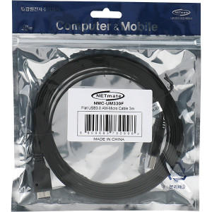 NETmate NMC-UM330F USB3.0 MicroB FLAT 케이블 3m (블랙) > USB케이블