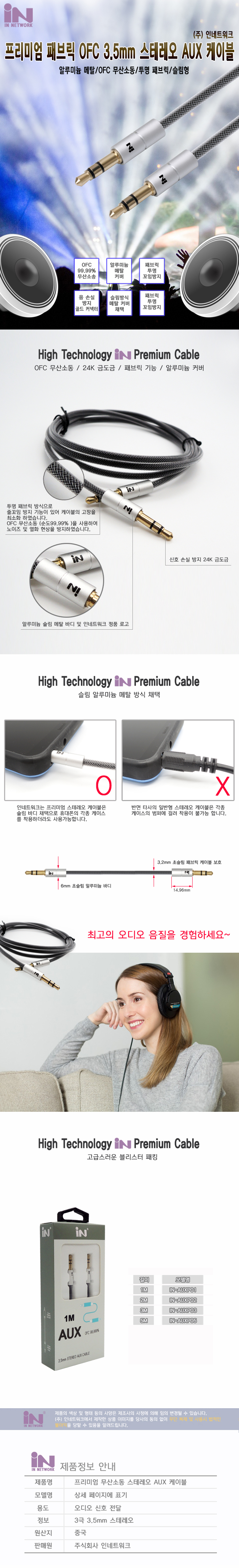 • INS013 AUX 스테레오 무산소동 3.5 스테레오 케이블 수수 2M