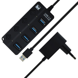 인네트워크 USB3.0 개별전원 4포트 허브+유전원 아답터 IN-PW3U4BK INV165