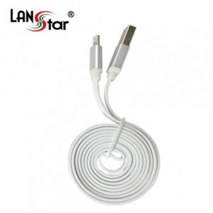 [LANstar] 아이폰5/6 USB TO 라이트닝 8핀 평면 충전 데이타 실버메탈 케이블 1M [10730]