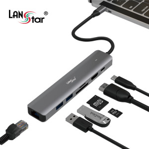 [LANstar] Type C 7in1 멀티허브, HDMI2.0 / PD100W / Giga LAN / SD,TF / USB3.0 [30775] (110개)